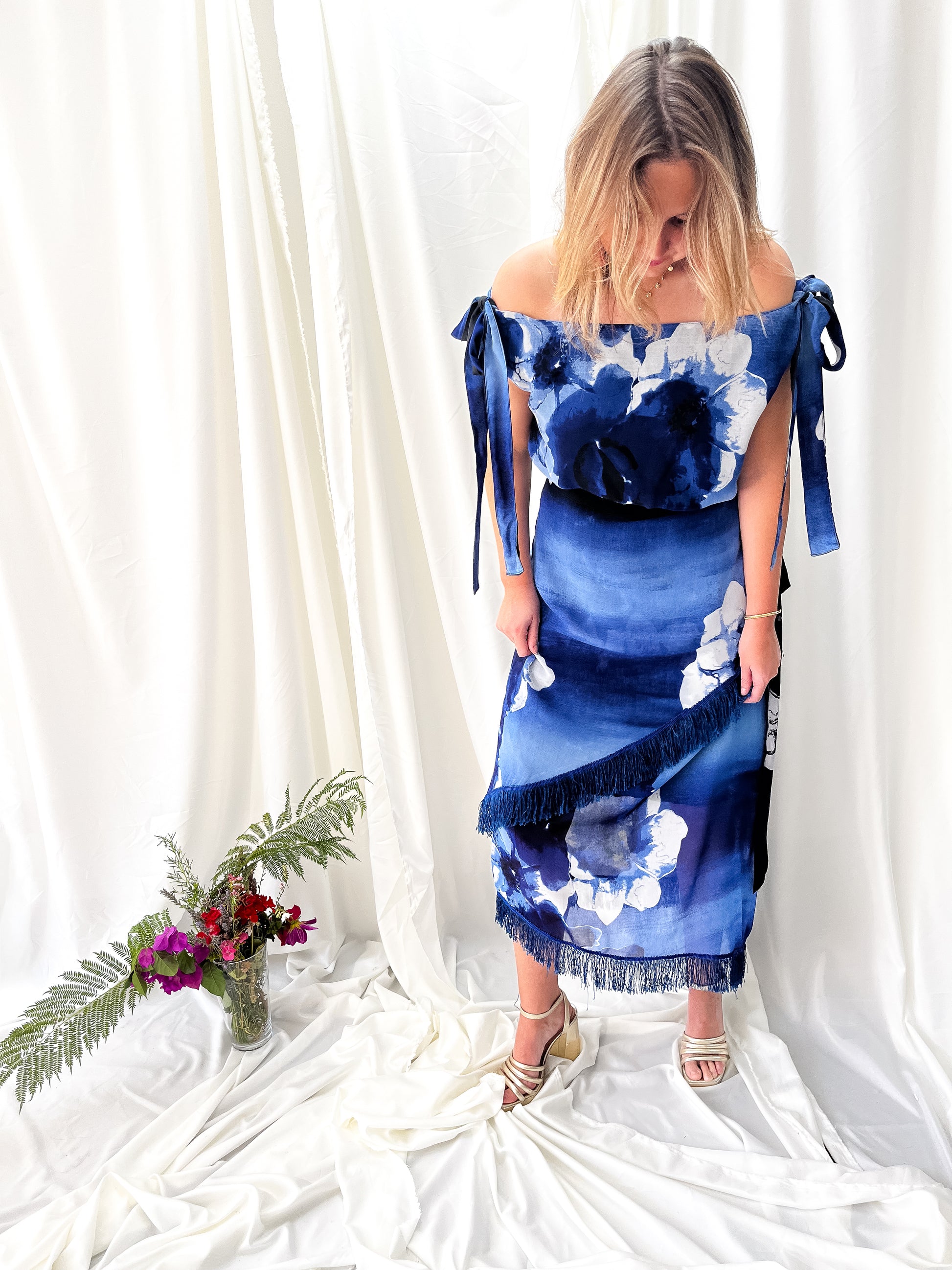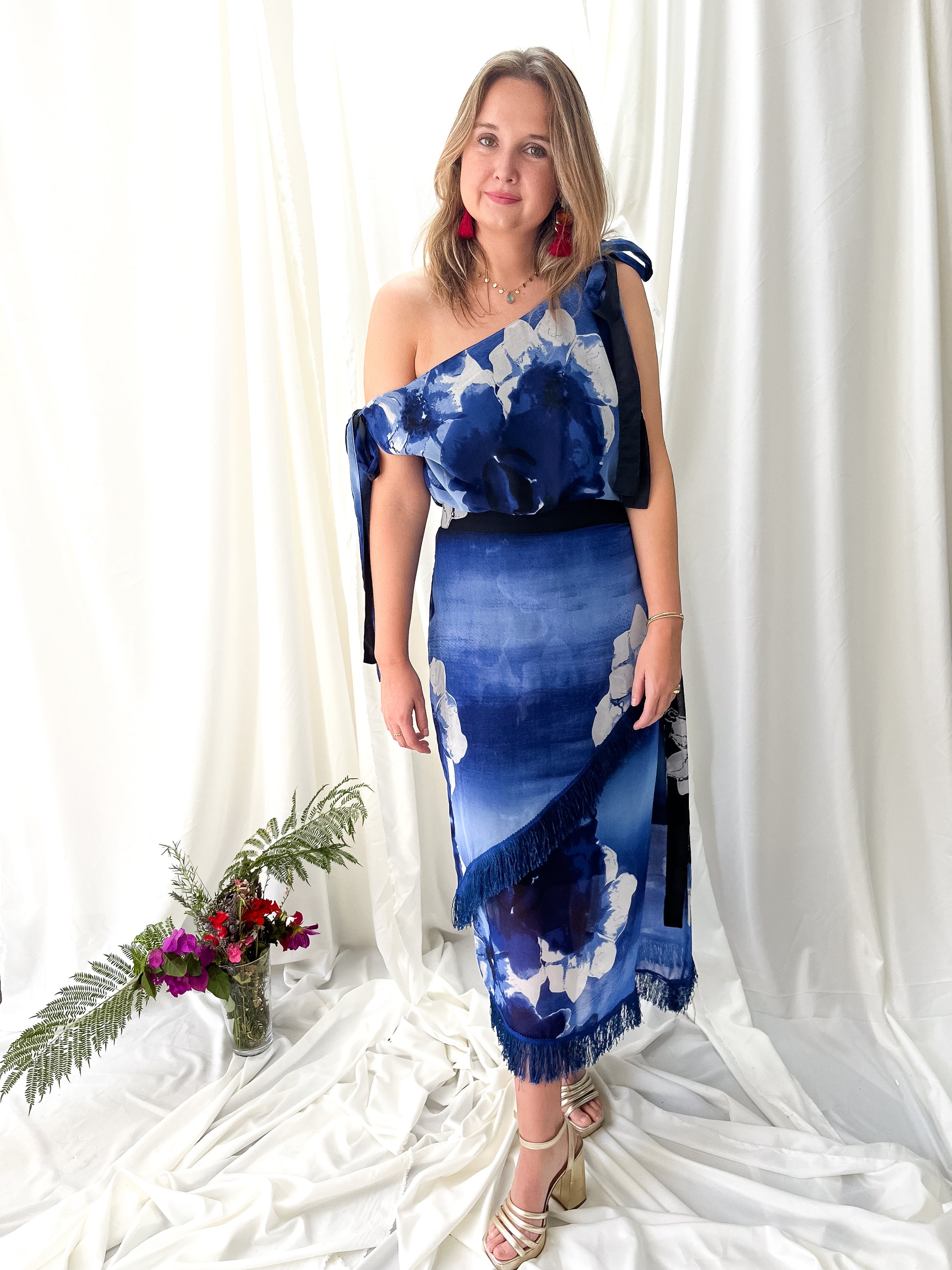 El Conjunto Milán es una propuesta única y sofisticada de dos piezas que une lo clásico con lo moderno. Compuesto por una falda con flecos de caída elegante y un top versátil que puede usarse con o sin hombros descubiertos, este diseño está pensado para mujeres que quieren destacar con estilo, personalidad y libertad de movimiento.