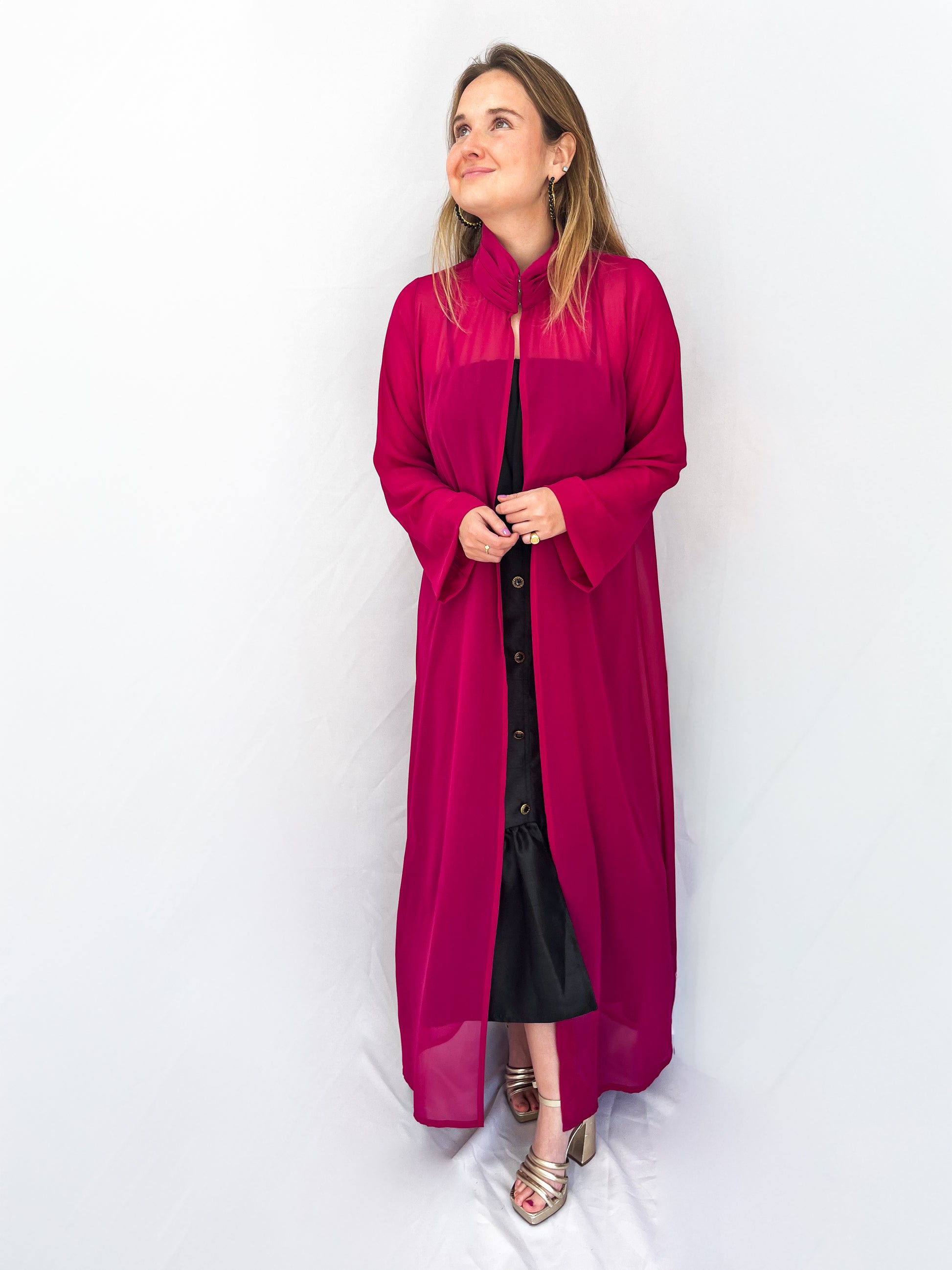 El Kimono Maidera es la prenda perfecta para elevar cualquier look de fiesta o matrimonio. Confeccionado en un tono fucsia profundo, su caída ligera y fluida aporta sofisticación sin esfuerzo, convirtiéndolo en un aliado ideal para complementar vestidos largos, enteritos o conjuntos de dos piezas.